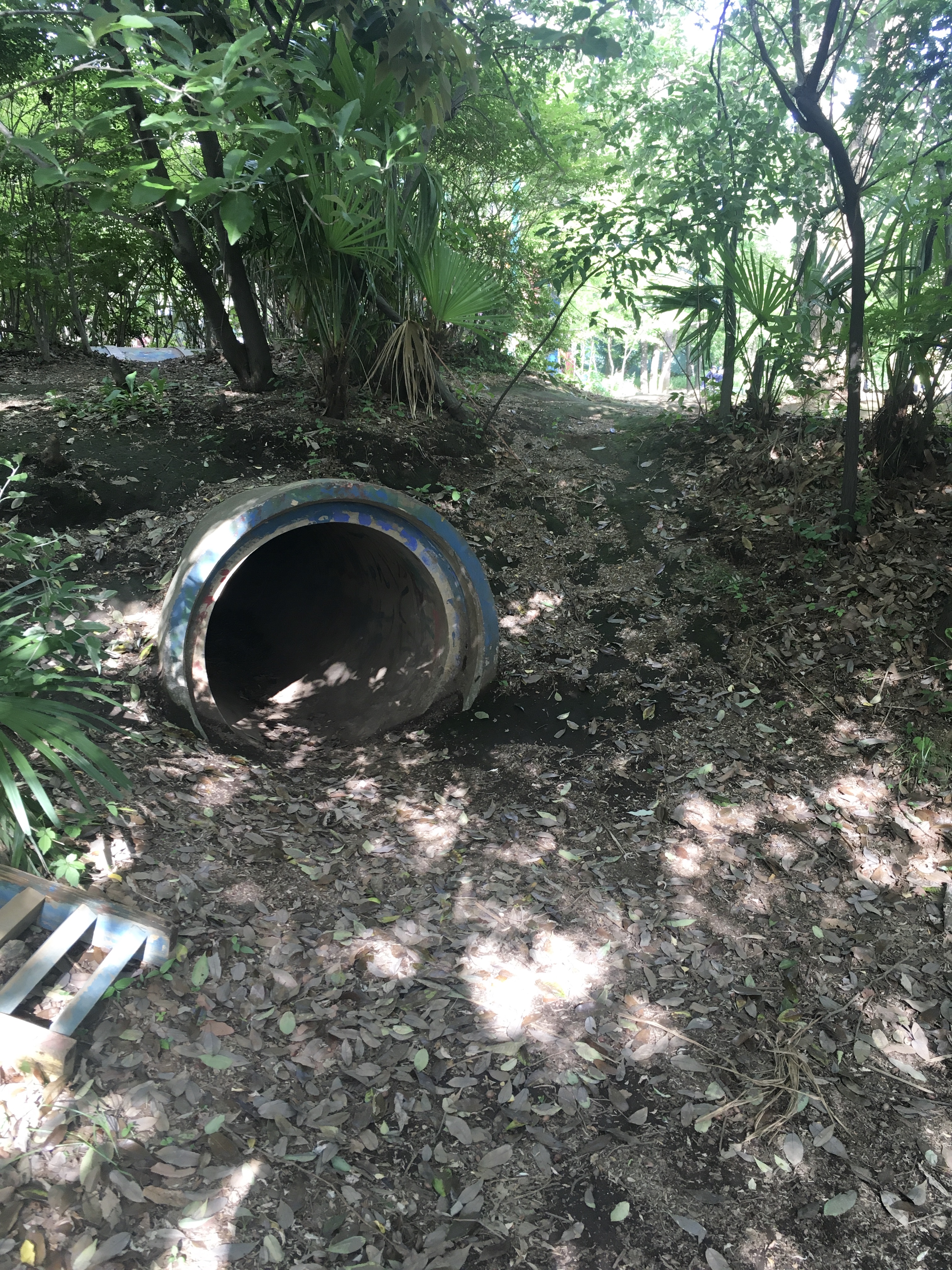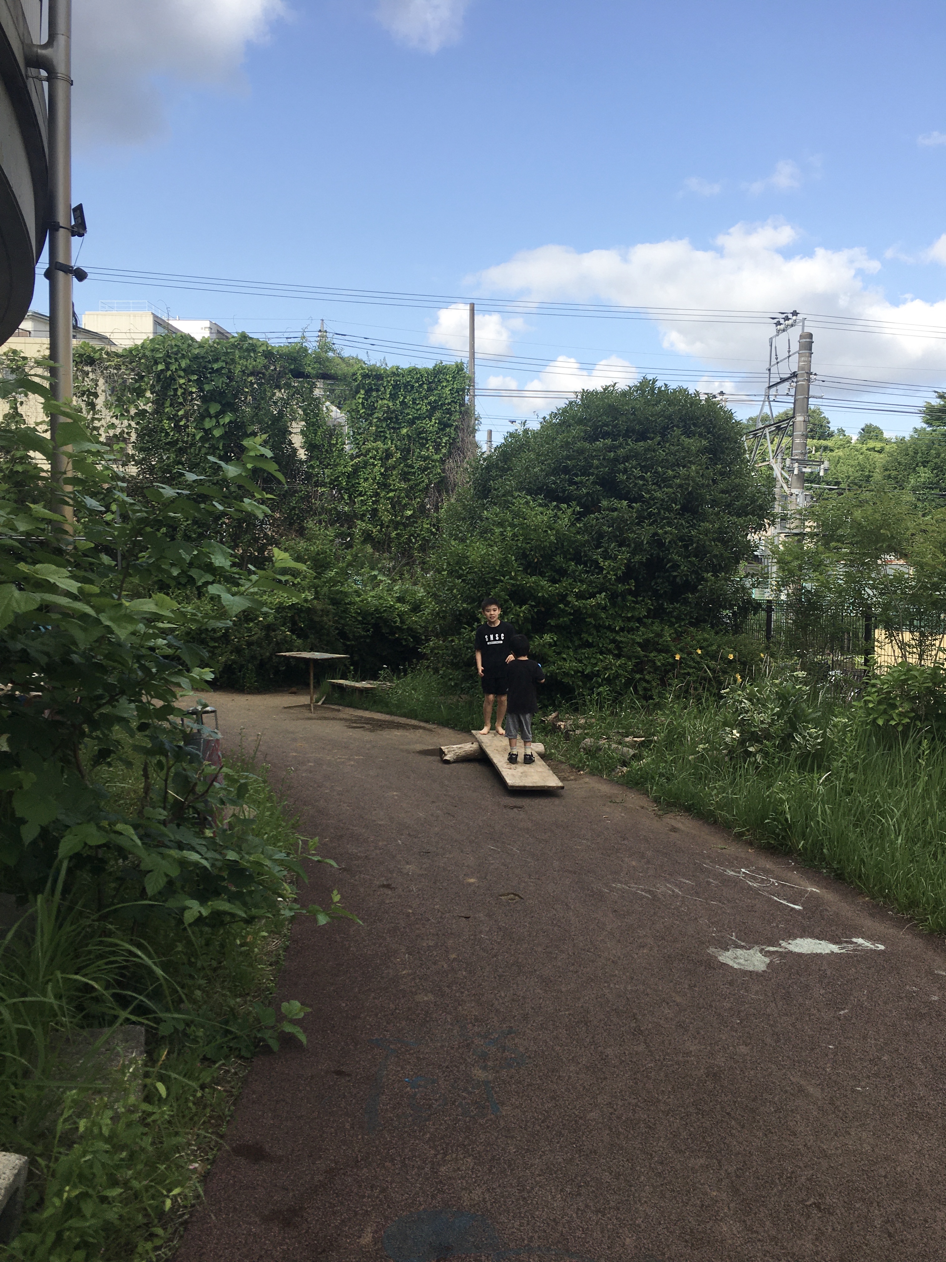 ここで自転車やスケボーの練習をしたり、茂みで虫取りをしたりできます。